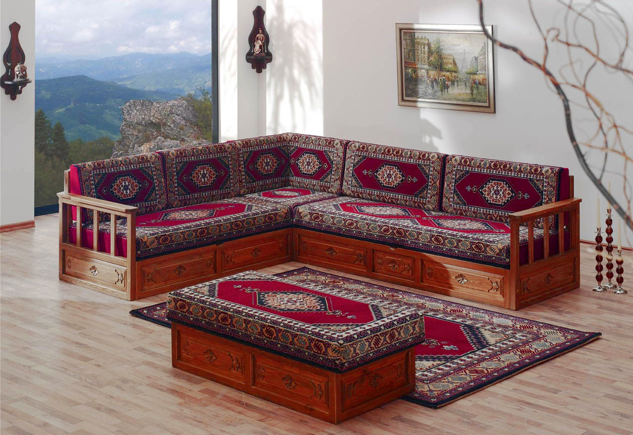 Şark Sedir Ladin Ahşap Özel İmalat Klasik Kilim Desenli Kumaş