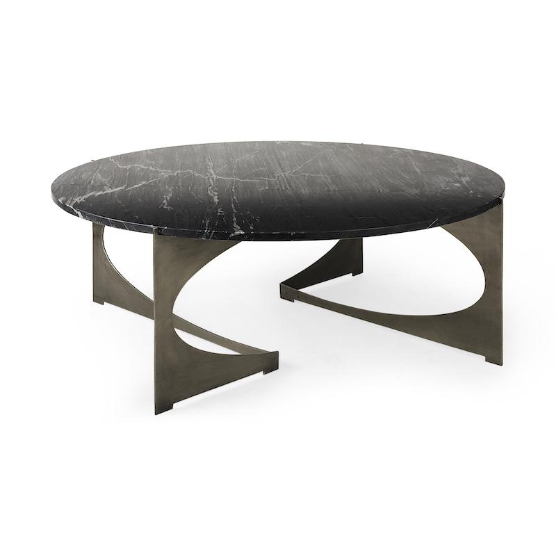 Pirinç Kaplamalı Paslanmaz V Ayaklı Siyah Renkli Dış Mekan Mermer Masa brs3698