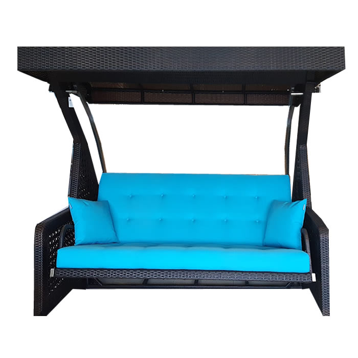 <p>Siyah Rattan Örmeli Mavi Kumaşlı Üçlü Bahçe Salıncağı<br></p>